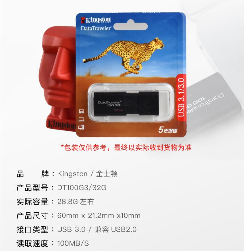 金士頓 32GB U盤 DT100G3 推拉高速優(yōu)盤USB3.0 車載u盤